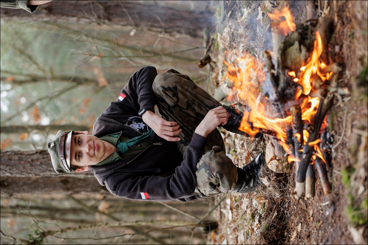 A wracając do samej zbiórki… biała aura miło nas dziś zaskoczyła i dodała uroku naszym leśnym harcom. Zastępy miały okazję rozpalać ognisko, a następnie w prawidłowy sposób gasić je i maskować. Oprócz tego harcerze dowiedzieli się jak prawidłowo i bezpiecznie korzystać z narzędzi i sprzętu pionierskiego. Wisienką na torcie było oczywiście rozstawianie naszej wygranej „dyszki”. Oczywiście na śniegu 😉